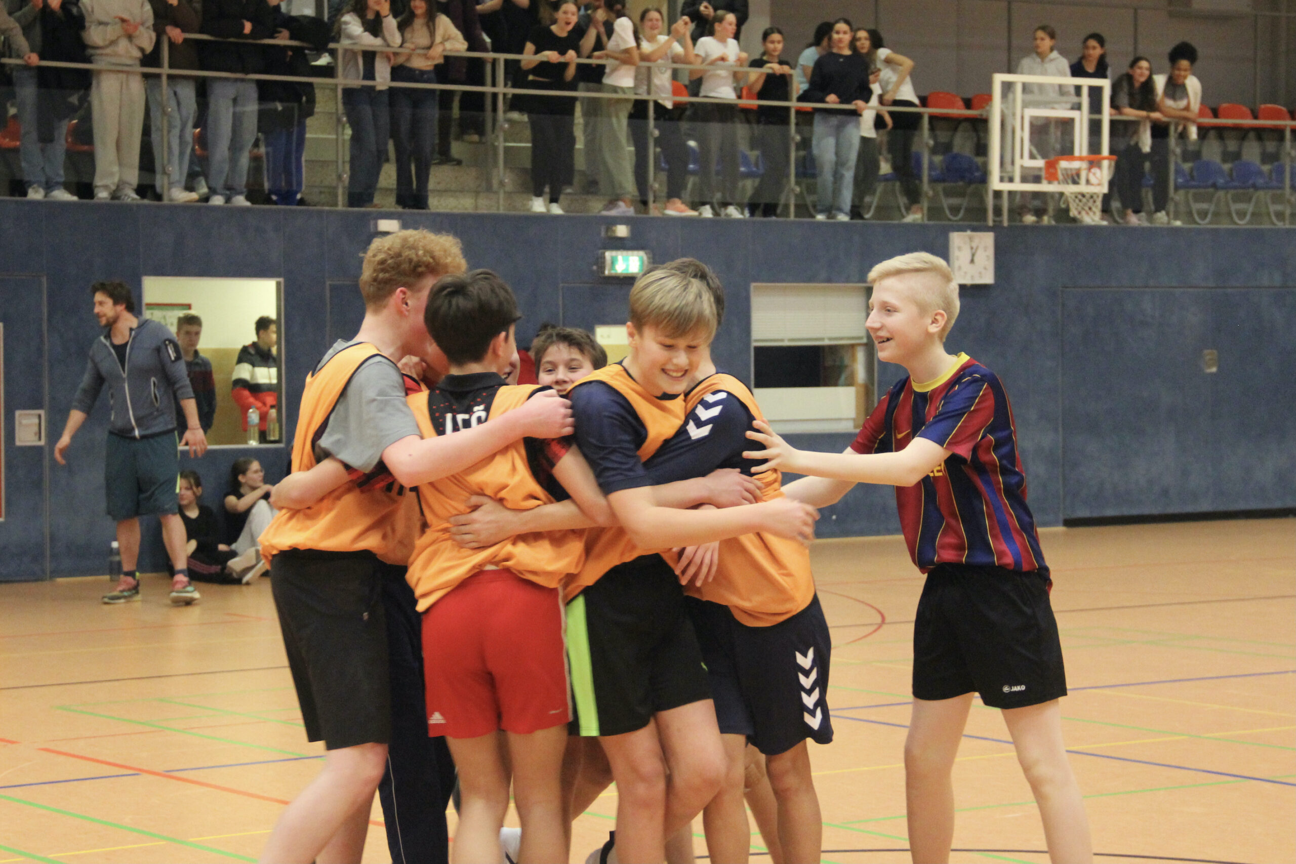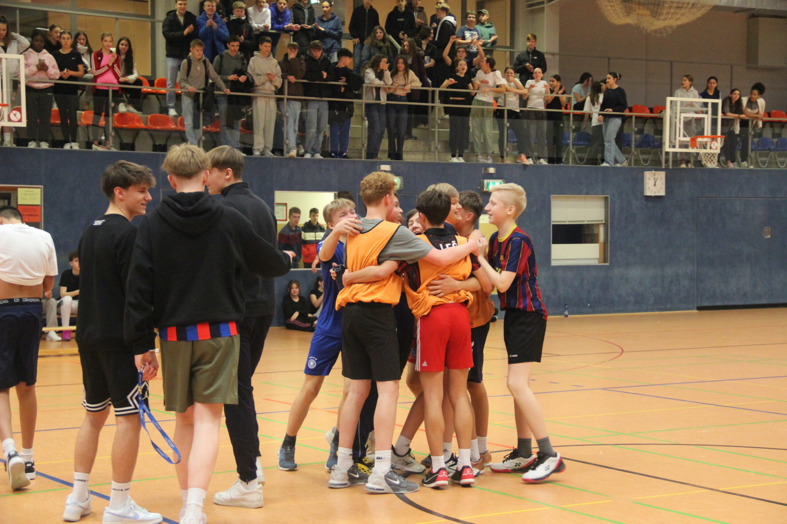 Während der Spielzeit wurden die motivierten BasketballerInnen fleißig von Herrn Beckmann, Herrn Eichert, den Schiedsrichtern aus den oberen Jahrgängen sowie dem Orga-Team der Klasse 11/1 unterstützt und begleitet. Abschließend fand die Siegerehrung um 13 Uhr statt, welche auch weiterhin von der Tribüne aus angefeuert und gefeiert wurde, sodass das Turnier spaßig und zufrieden für alle Beteiligten endete.