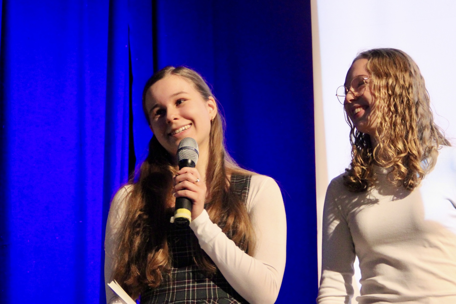 Heute um 8:00 Uhr startete die erste Vollversammlung unserer Schule im Jahr 2025. Sie begann mit einer Aufführung des Chores, der von Frau Wiesener begleitet und geleitet wurde. Anschließend stellten sich die einzelnen Mitglieder unseres 6er-Rates vor, und Amy präsentierte die Gliederung der Vollversammlung.