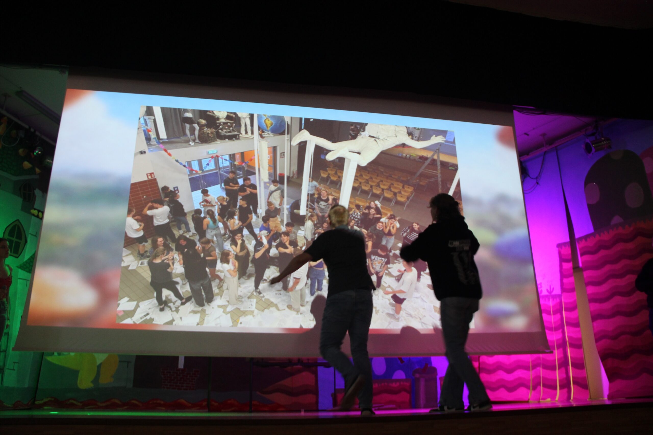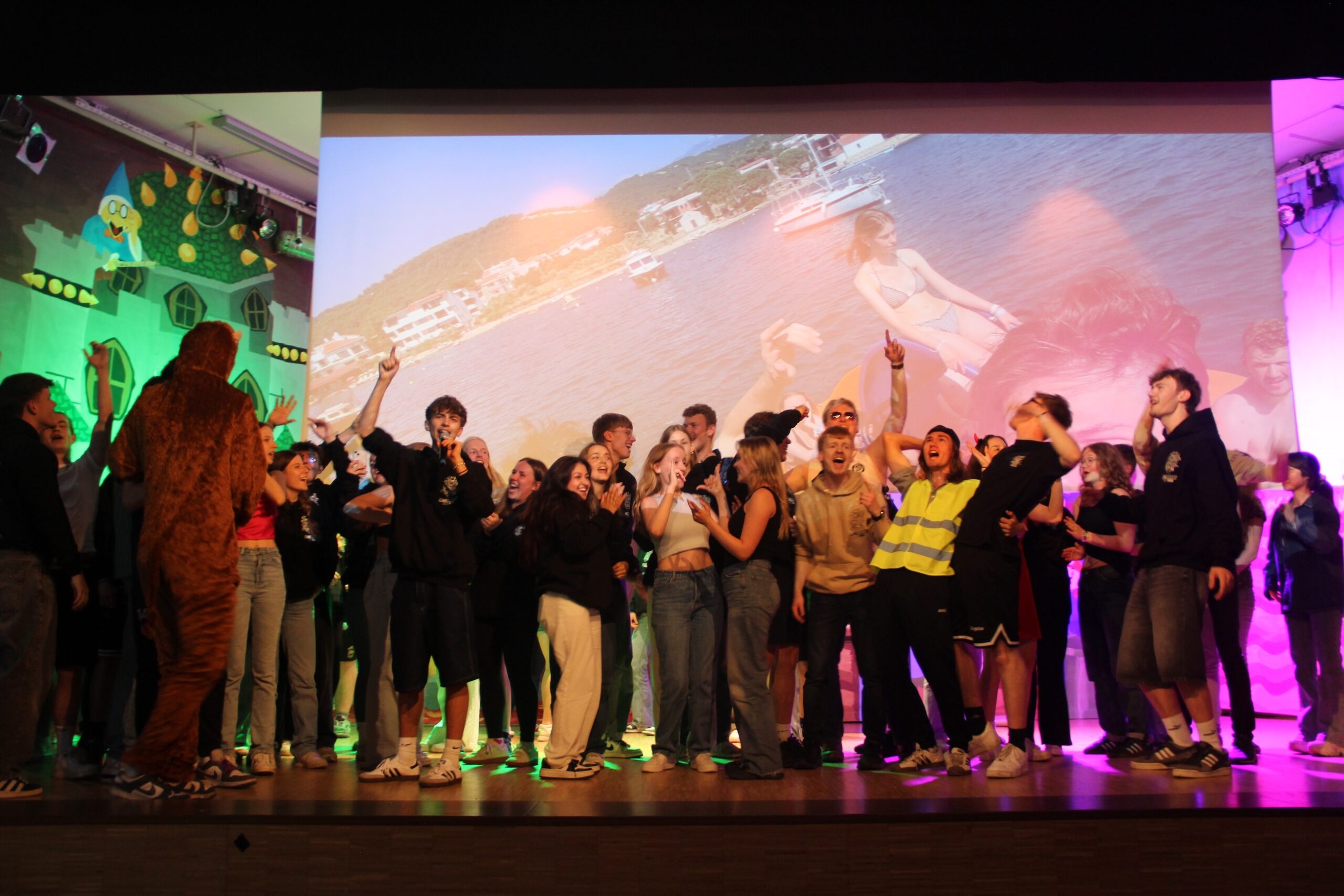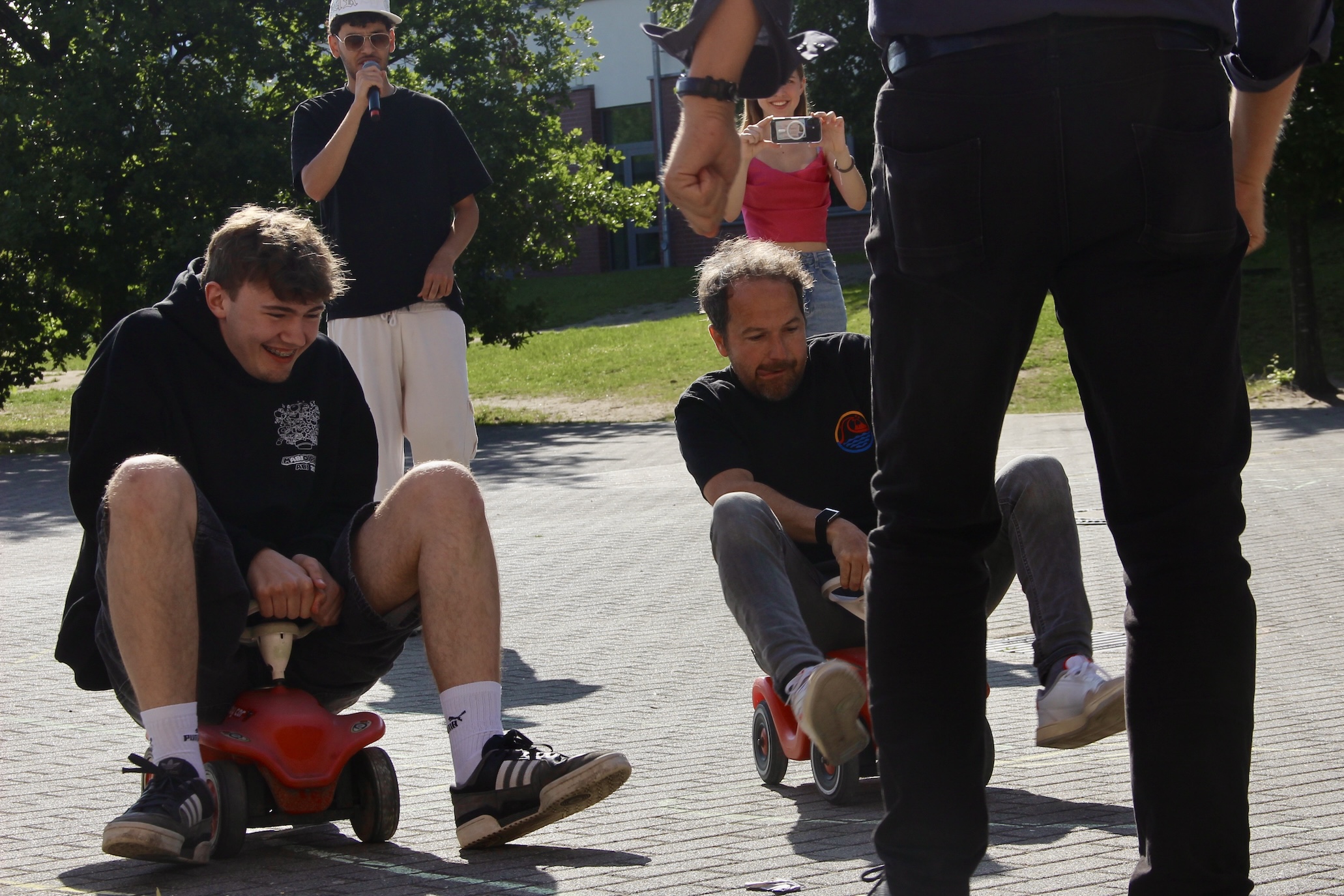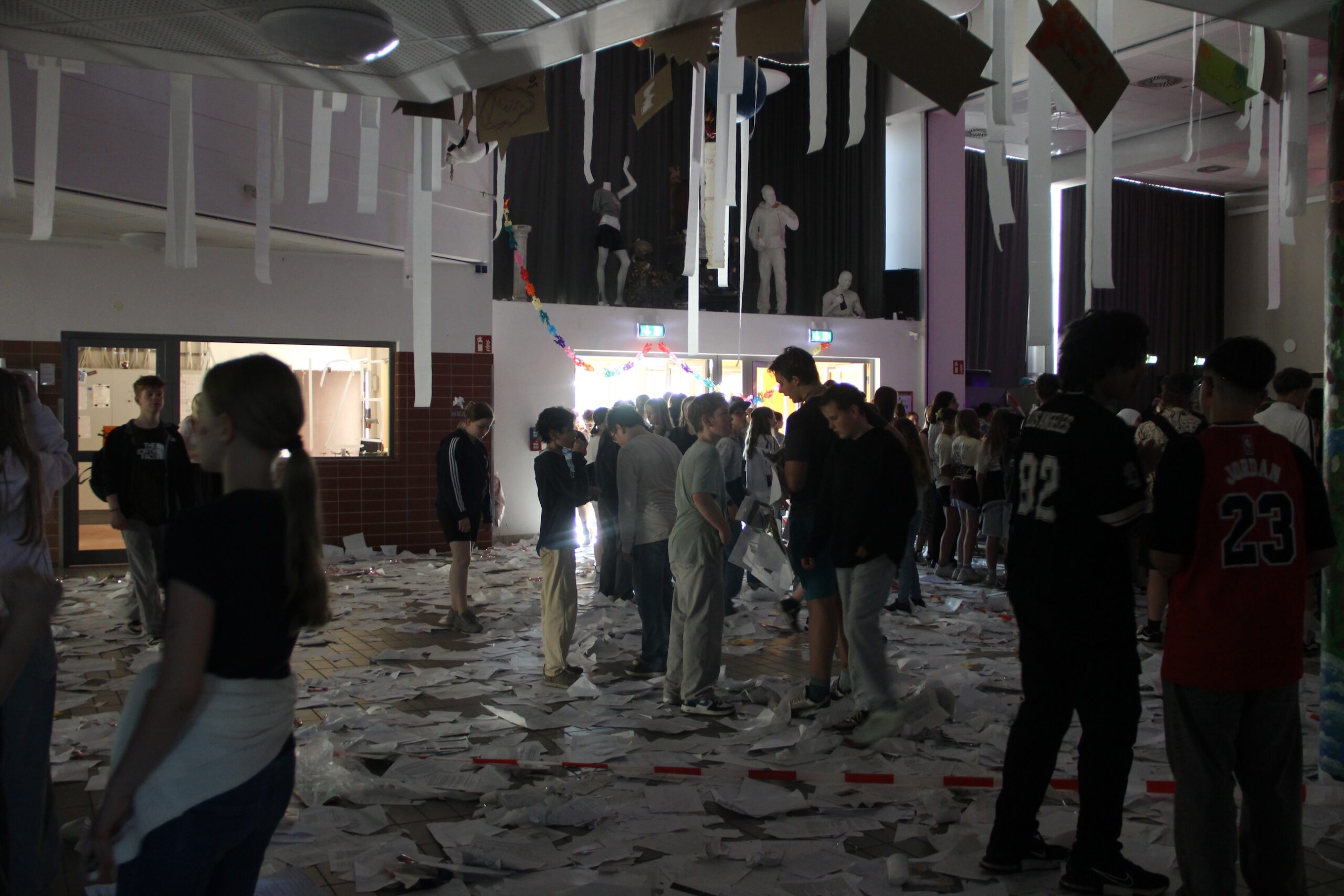 Jede Schülerin und jeder Schüler kennt das: Ende des Schuljahres, der 13 Jahrgang hat seine Prüfungen hinter sich und plötzlich ist entweder das Schulgebäude nicht mehr begehbar, viele Schülerinnen und Schüler bemalt und das Forum voll mit Luftballons sowie gebrauchten Arbeitsblättern. Und einige Lehrer müssen sich ganz besonderen Prüfungen auf der Bühne stellen. Hier ein paar Impressionen...
