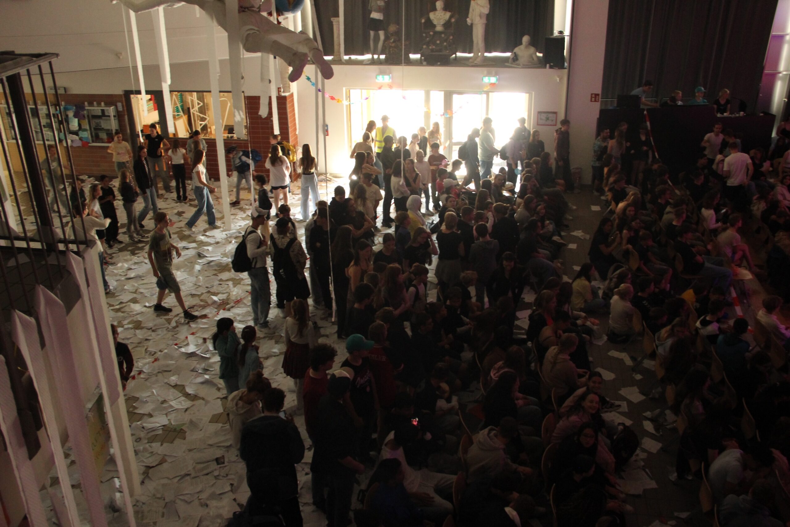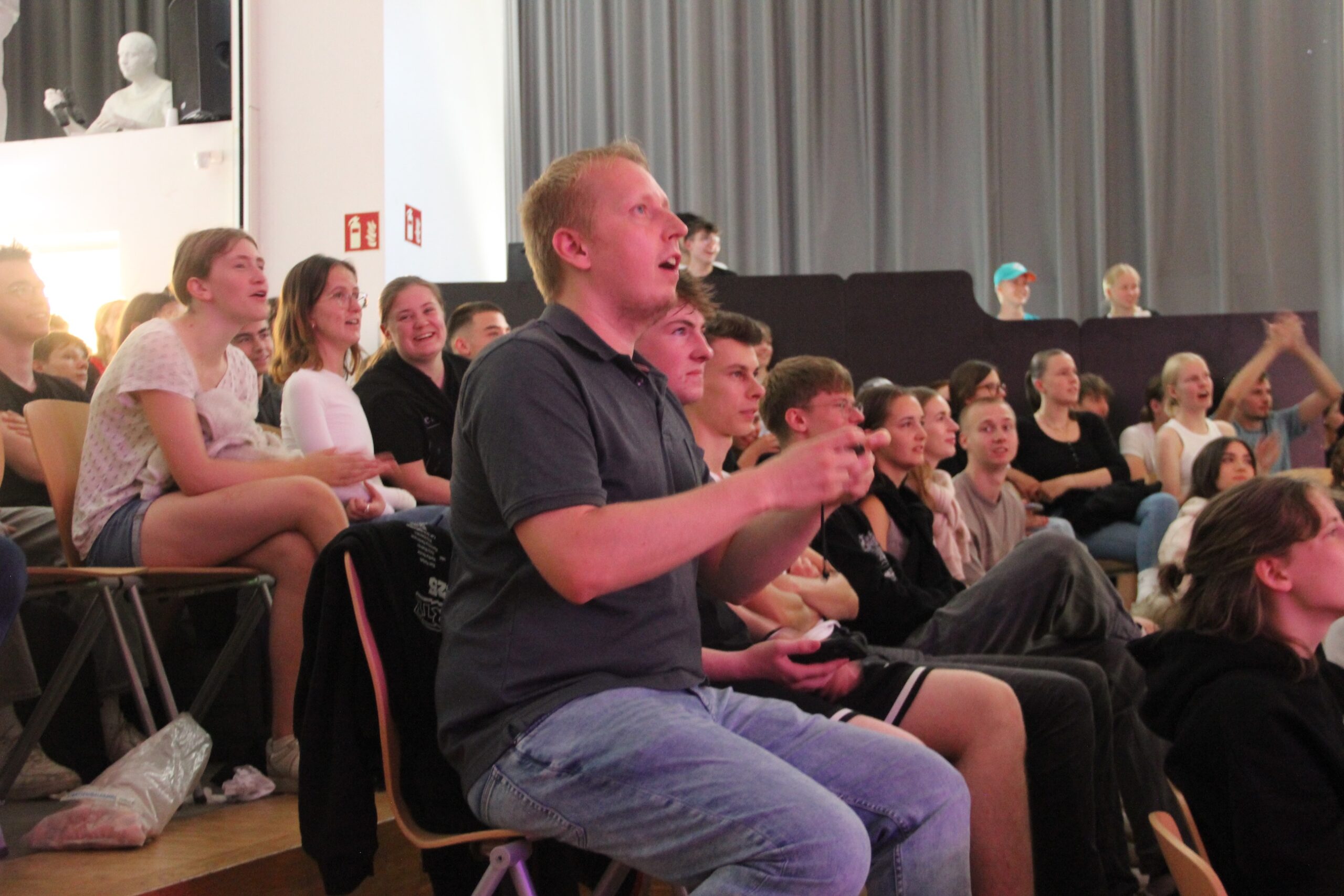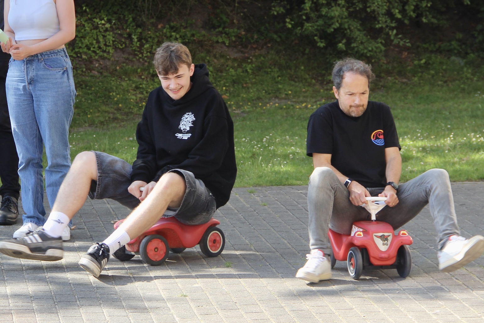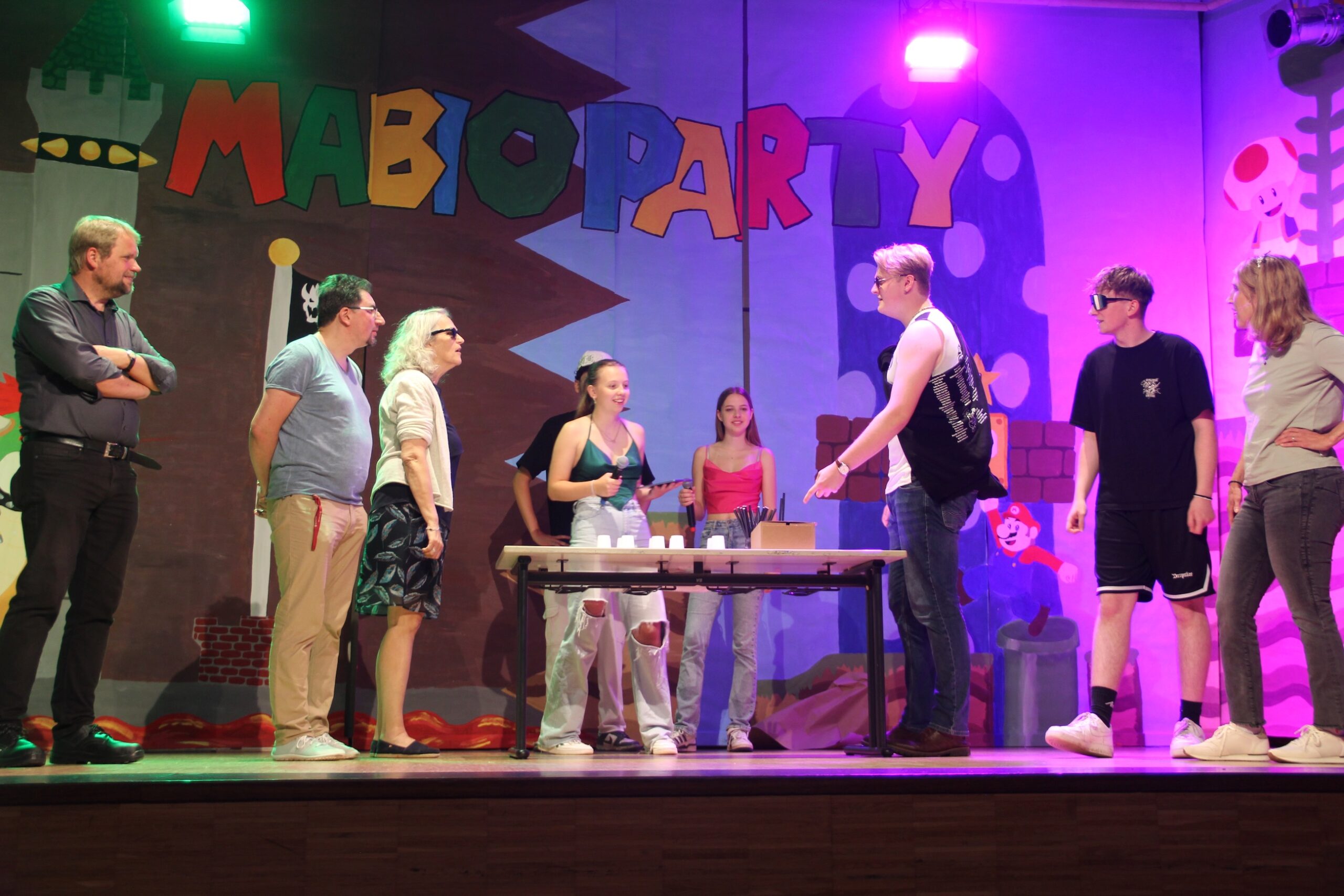 Jede Schülerin und jeder Schüler kennt das: Ende des Schuljahres, der 13 Jahrgang hat seine Prüfungen hinter sich und plötzlich ist entweder das Schulgebäude nicht mehr begehbar, viele Schülerinnen und Schüler bemalt und das Forum voll mit Luftballons sowie gebrauchten Arbeitsblättern. Und einige Lehrer müssen sich ganz besonderen Prüfungen auf der Bühne stellen. Hier ein paar Impressionen...