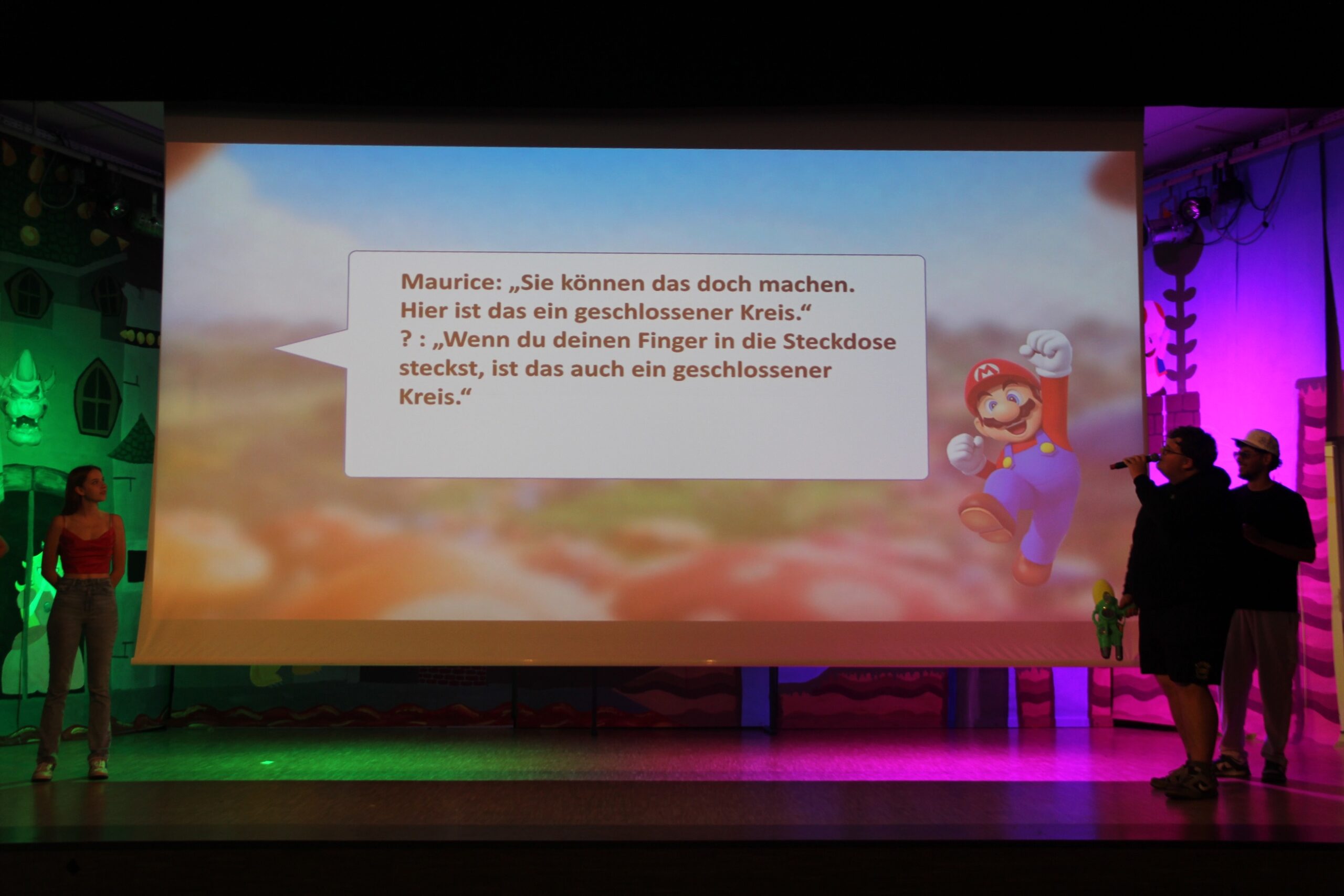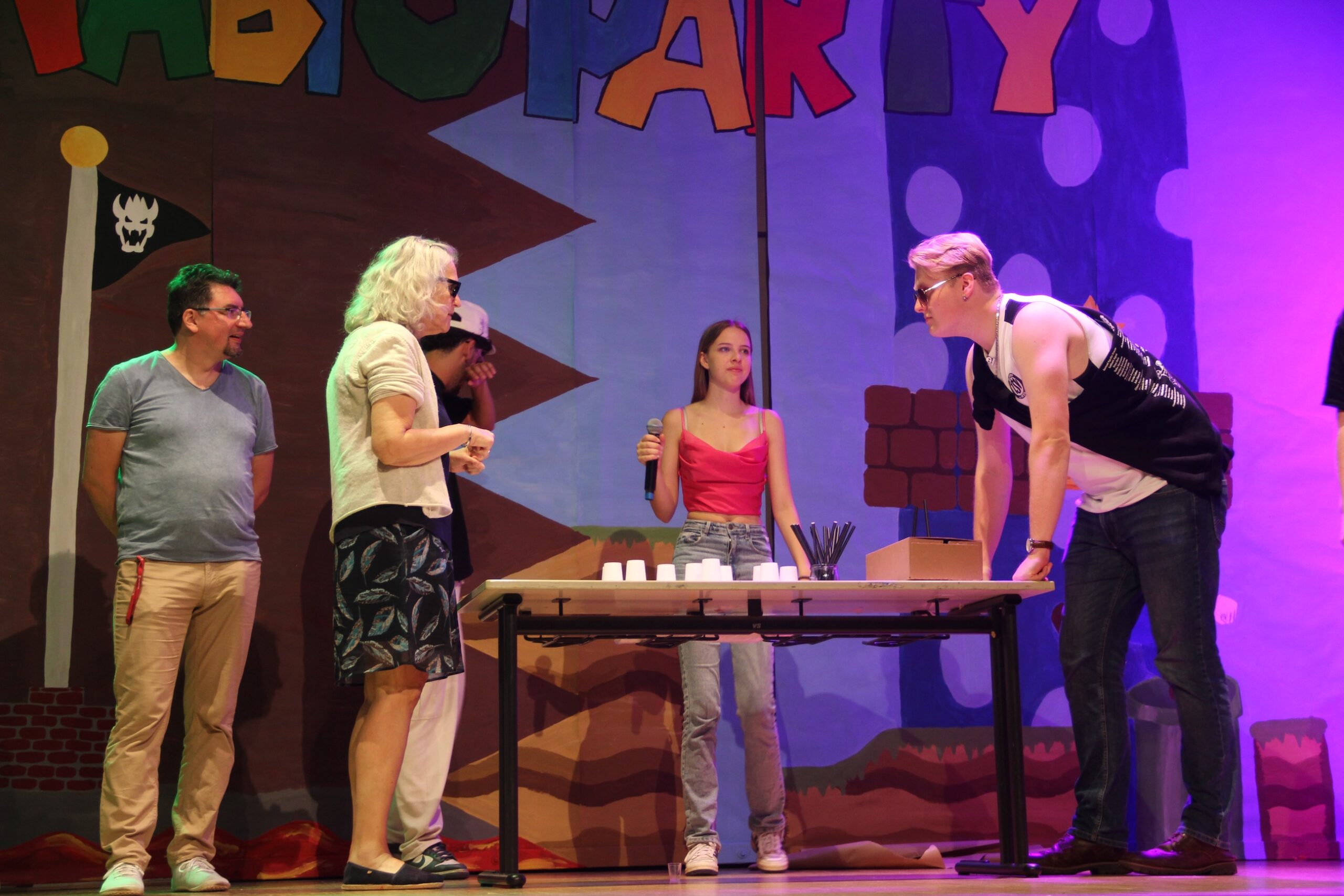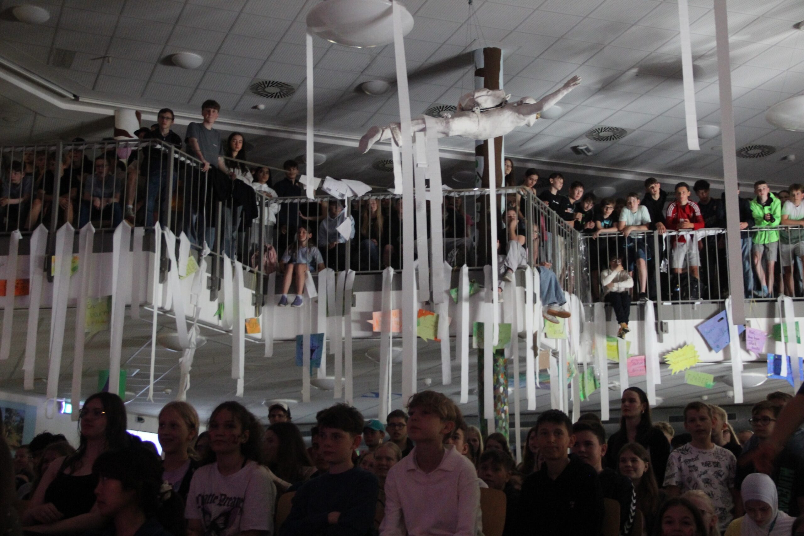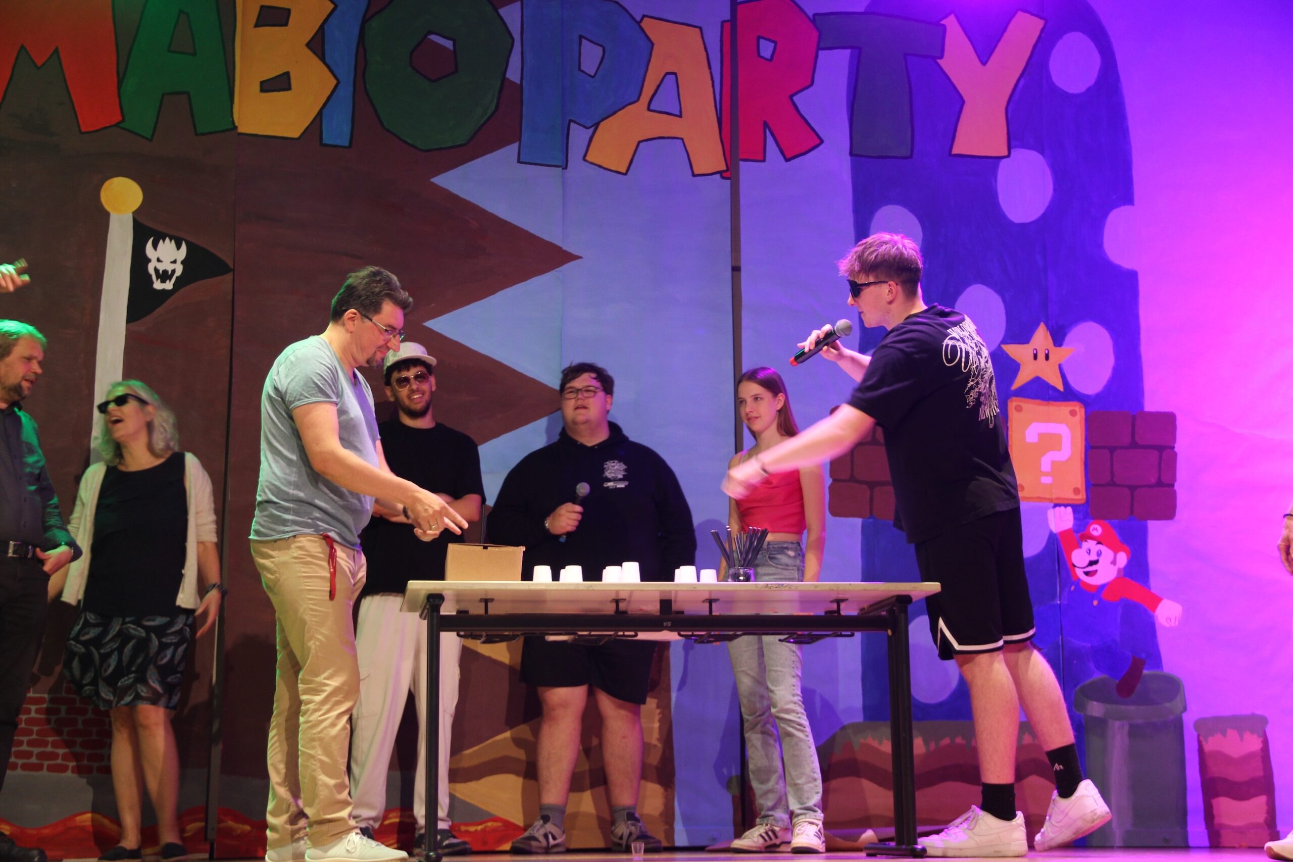 Jede Schülerin und jeder Schüler kennt das: Ende des Schuljahres, der 13 Jahrgang hat seine Prüfungen hinter sich und plötzlich ist entweder das Schulgebäude nicht mehr begehbar, viele Schülerinnen und Schüler bemalt und das Forum voll mit Luftballons sowie gebrauchten Arbeitsblättern. Und einige Lehrer müssen sich ganz besonderen Prüfungen auf der Bühne stellen. Hier ein paar Impressionen...