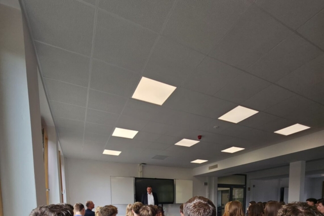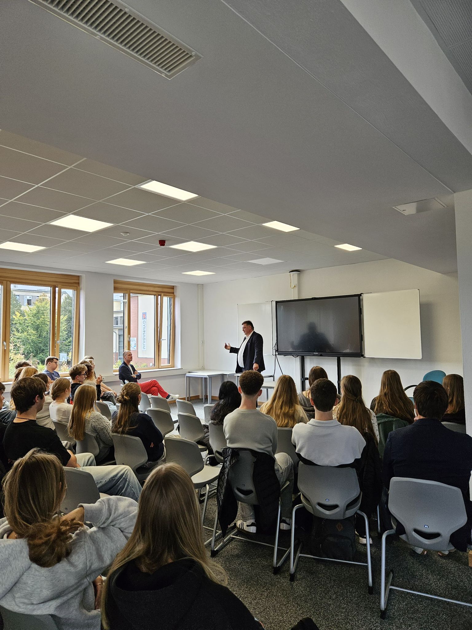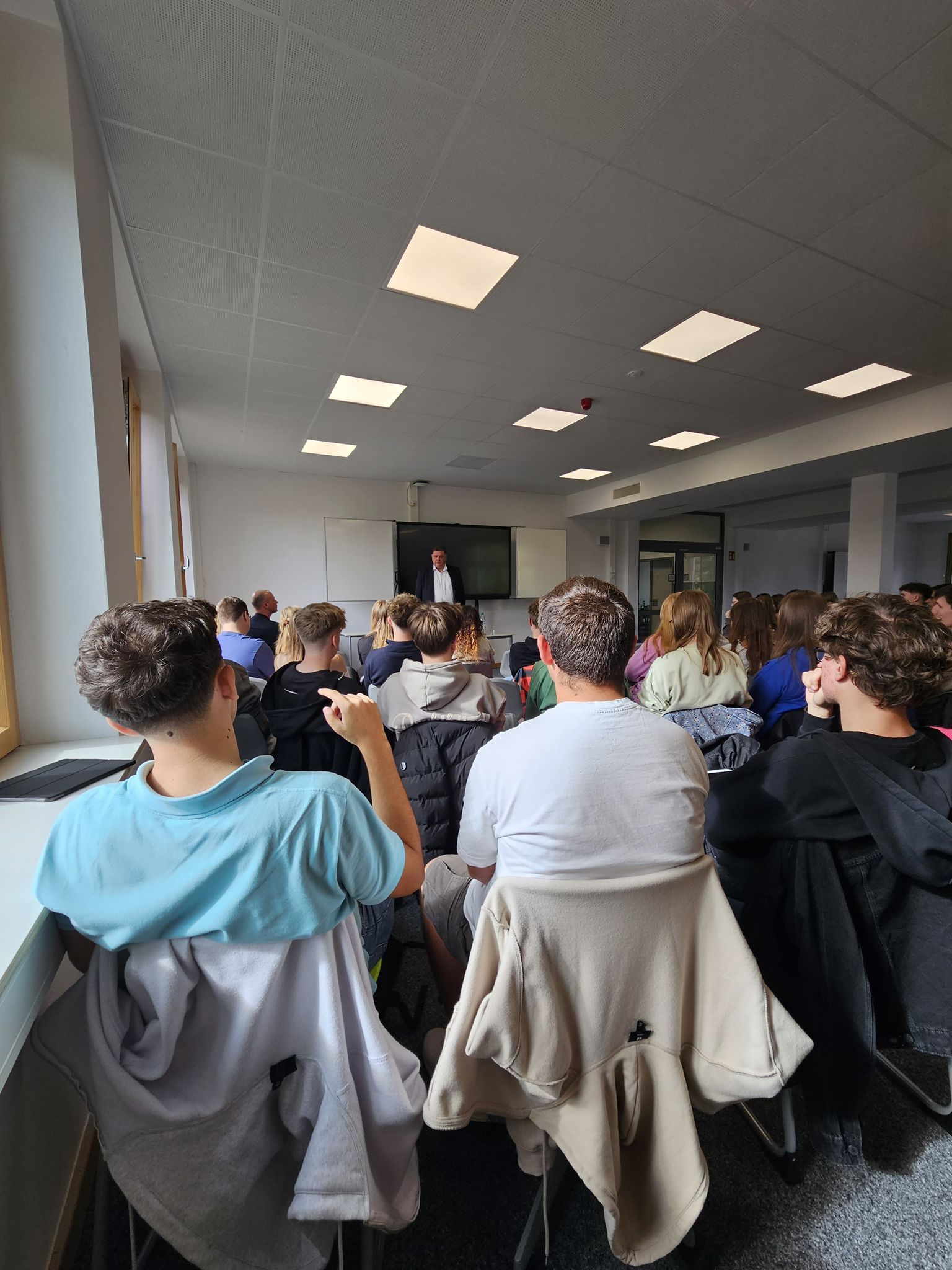 Die PoWi-Schüler:innen des 12. Jahrgangs hatten die Möglichkeit, sich mit Herrn Nacke über den Zustand und die Zukunft unserer Demokratie auszutauschen. Die durchaus kritischen Fragen der Schüler:innen bezüglich Chancengerechtigkeit, Gleichberechtigung und Repräsentativität der Jugendlichen wurden von Herrn Nacke umfassend beantwortet. Die Größe von 50 Schülerinnen und Schülern ließ eine offene Diskussionkultur zu, und Herr Nacke warb zuletzt dafür, dass sich die Heranwachsenden in die Gestaltung unseres Zusammenlebens einbringen müssen. Zum anderen hatte auch Herr Nacke die Gelegenheit, sich aus erster Hand über die Gedanken und Sorgen der jungen Generation zu informieren. Ein tolles Format.