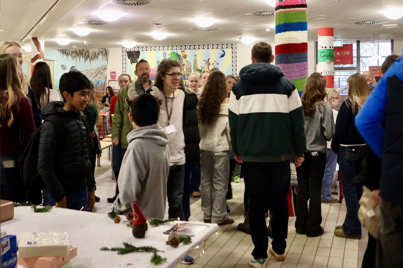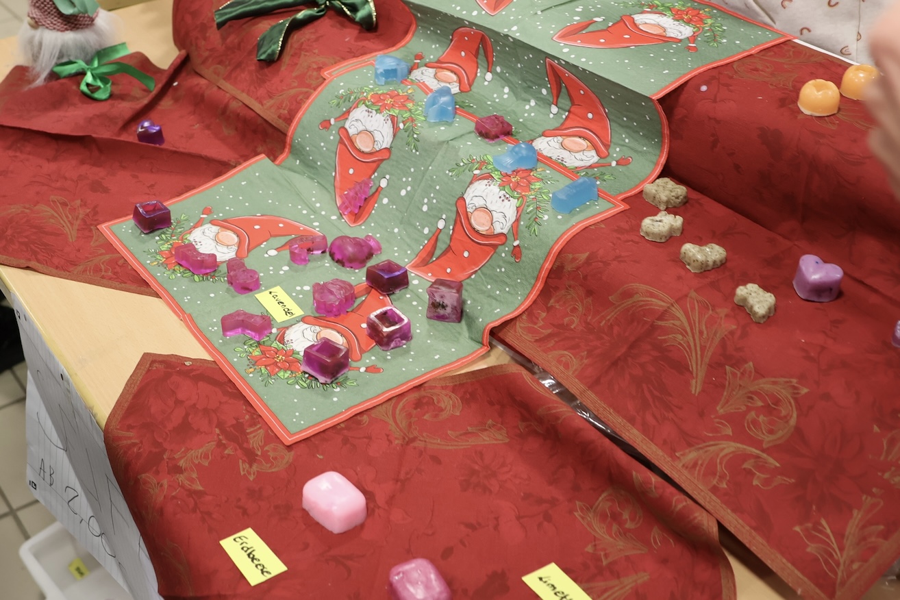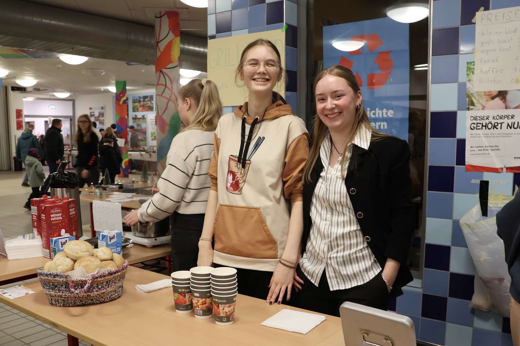 Die Klassen und Kurse des Gymnasiums hatten gemeinsam mit ihren Lehrkräften ein vielfältiges und liebevoll gestaltetes Angebot vorbereitet. An den zahlreichen Ständen gab es für Groß und Klein allerhand zu entdecken: Selbst gebastelte Weihnachtsdekorationen, handgefertigte Geschenke, kreative Mitmachaktionen sowie kleine Spiel- und Geschicklichkeitsstationen sorgten durchweg für Begeisterung. Auch das leibliche Wohl kam nicht zu kurz: Von frischen Waffeln über herzhafte Snacks bis hin zu warmen Getränken wurde den Gästen ein reichhaltiges kulinarisches Angebot präsentiert.