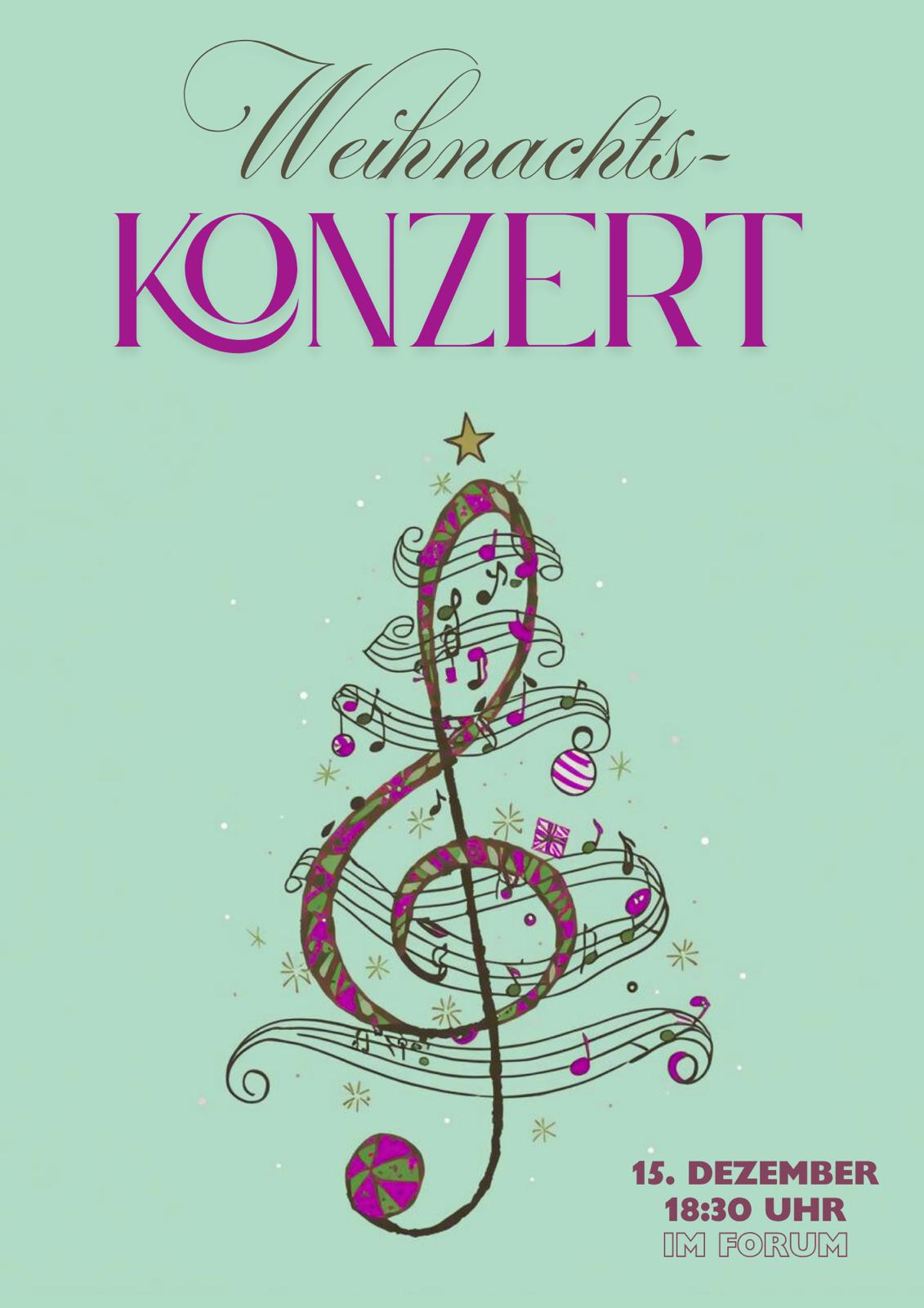 auch in diesem Jahr möchten wir Sie herzlich zu unserem Weihnachtskonzert einladen: Am 15.12. präsentieren unsere Musik-AGs ihre musikalische Arbeit und sorgen für ordentlich Weihnachtsstimmung! Konzertbeginn ist um 18:30 Uhr im Forum, der Eintritt ist frei.