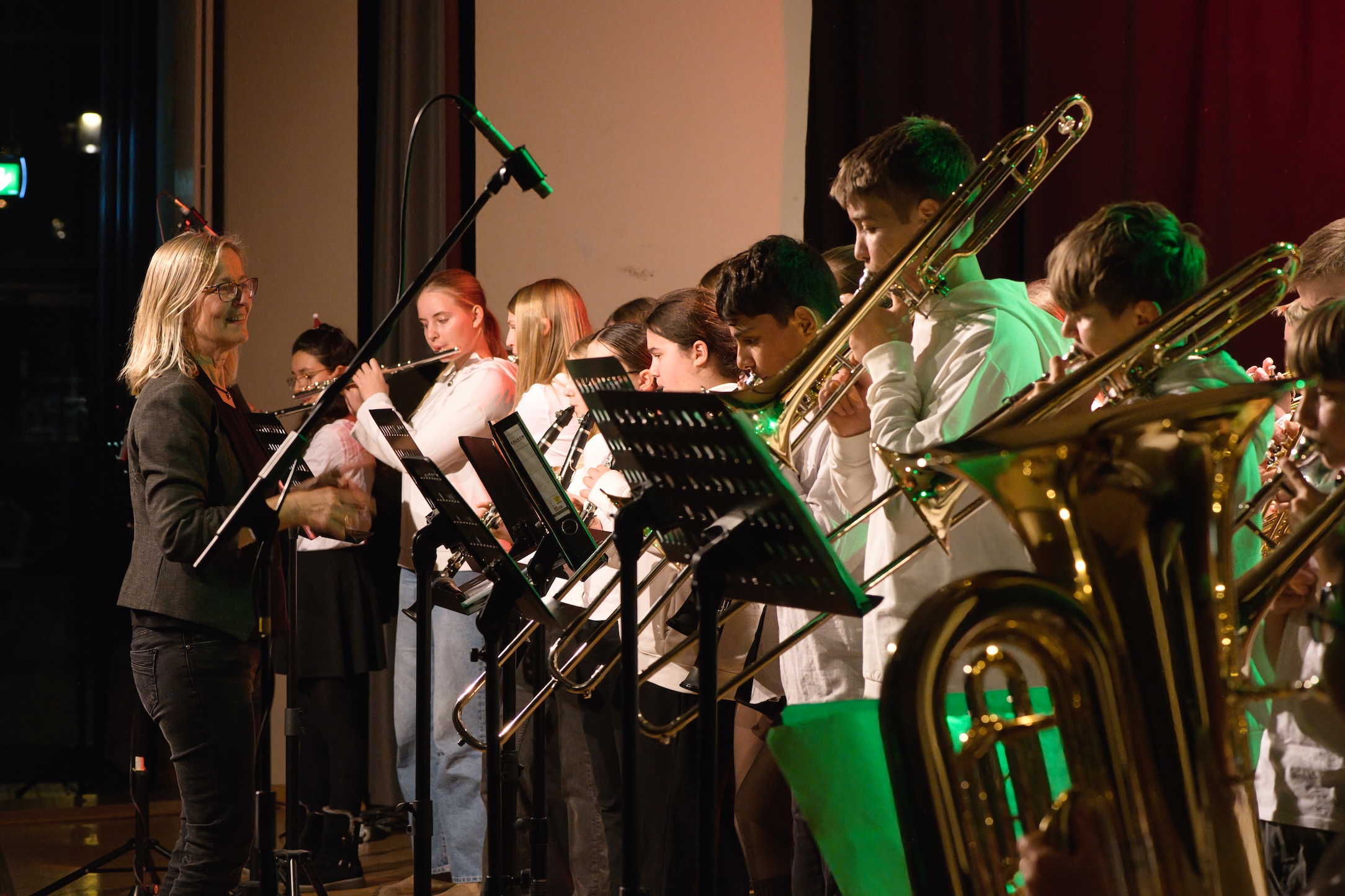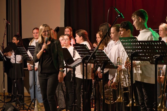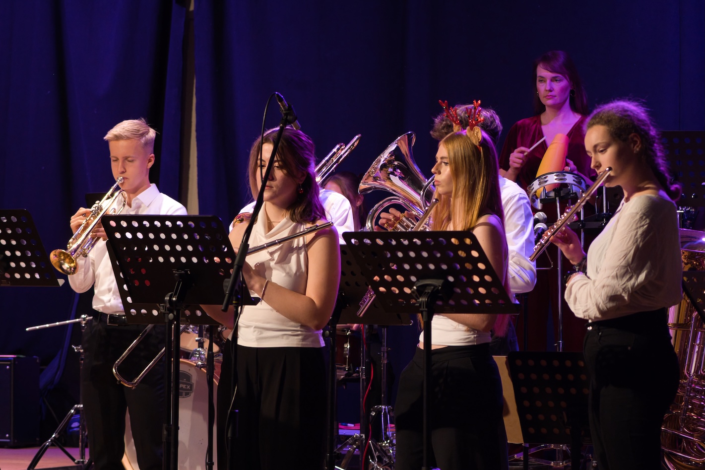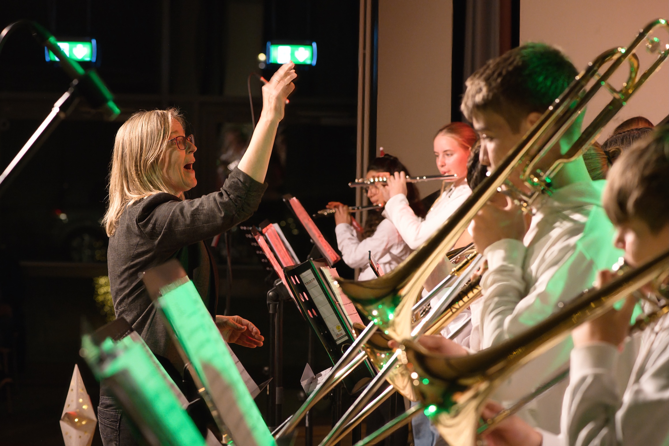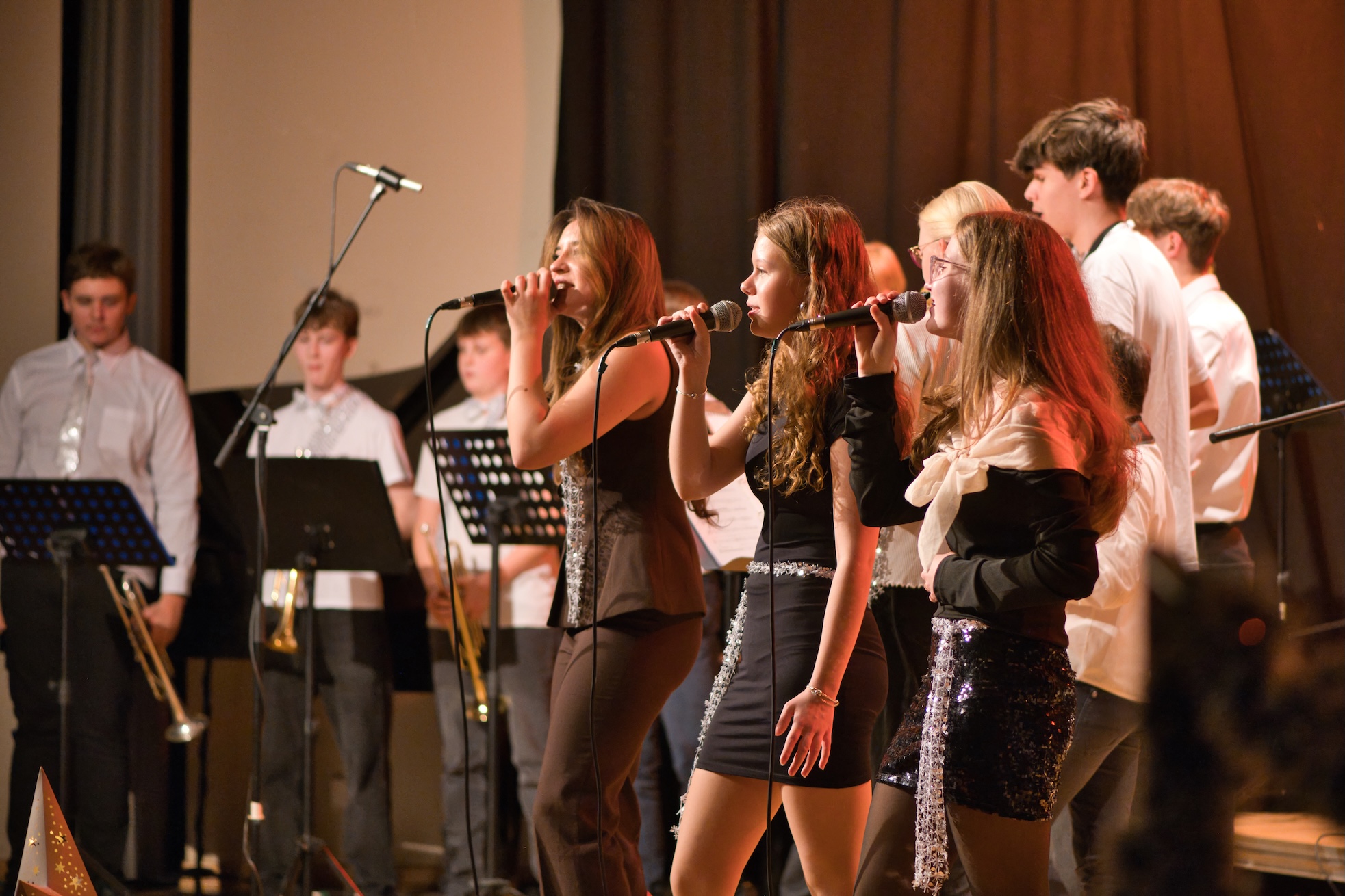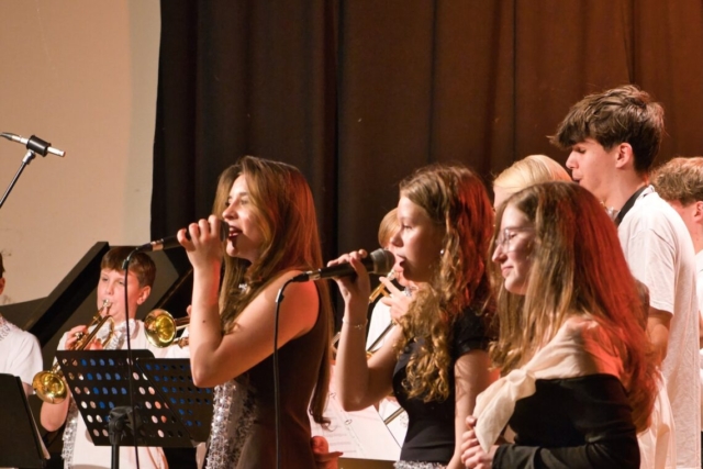 Bemerkenswert waren auch die Leistungen der Young Bigband, denn Frau Jellinek führte die Gruppe mit „Oye Como Va“ direkt ins Bigband-Genre, was richtig gut ankam! Der Kontrast zu dem Film-Medley „Moana“ unter der Leitung von Frau Jegminat war groß, doch die Gruppe bewegte sich in beiden Musikstilen souverän.