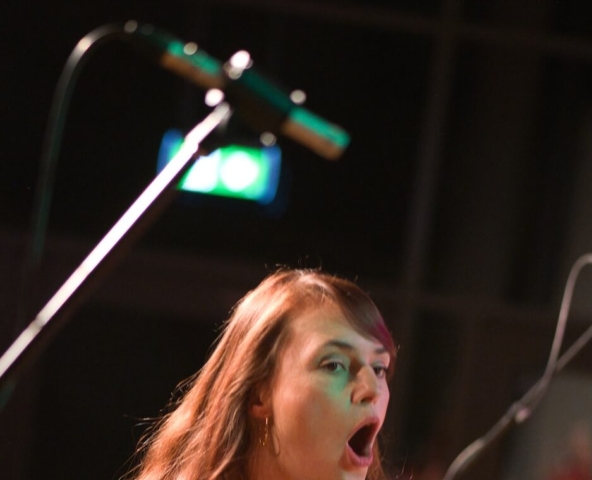 Mit zwei Songs heizte die Band Groovy Greetings dem Publikum ein, wobei die vier Sängerinnen mit ihren verschiedenen Stimmfarben und die beiden gelungenen Arrangements von Sebastian Wiesener gute Laune verbreiteten. Immer wieder beeindruckend sind die farbenfrohen Rhythmen der Salsa-Band Los Zorros, ebenso wie die starken Sängerinnen, die sich sprachlich so elegant auf Portugiesisch und Spanisch bewegen können. Die überwiegend aus jüngeren Schüler:innen auf dem Punkt landende Section der Trompeten, Posaunen, Euphonien und Saxofonen zeigte zudem eine große Strahlkraft mit bestem Timing!