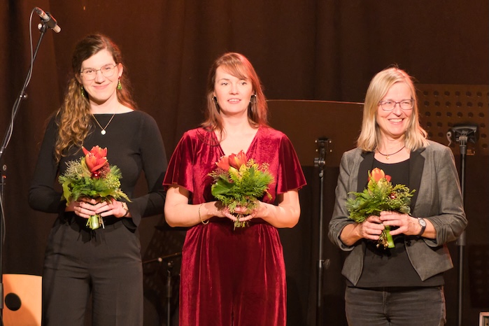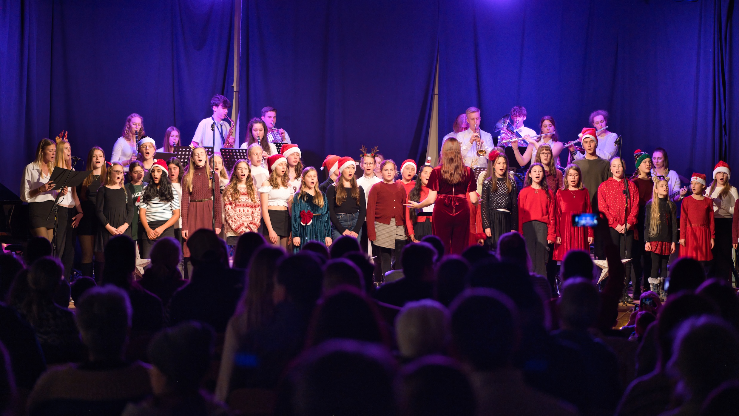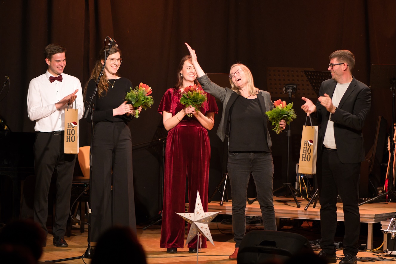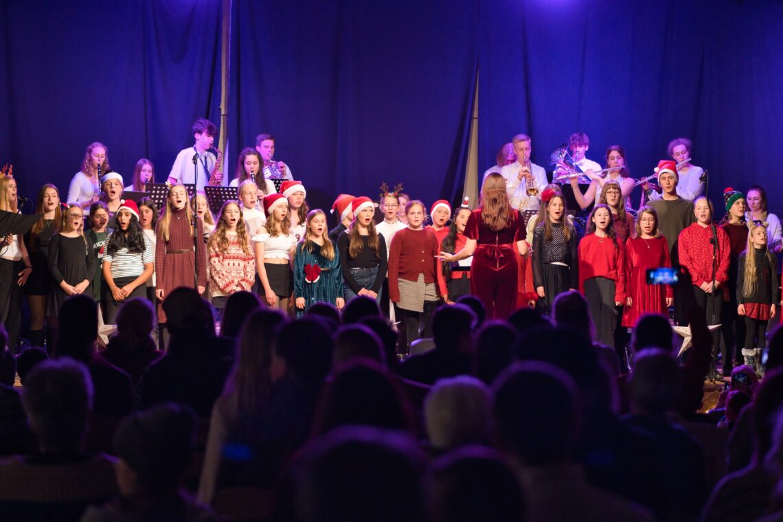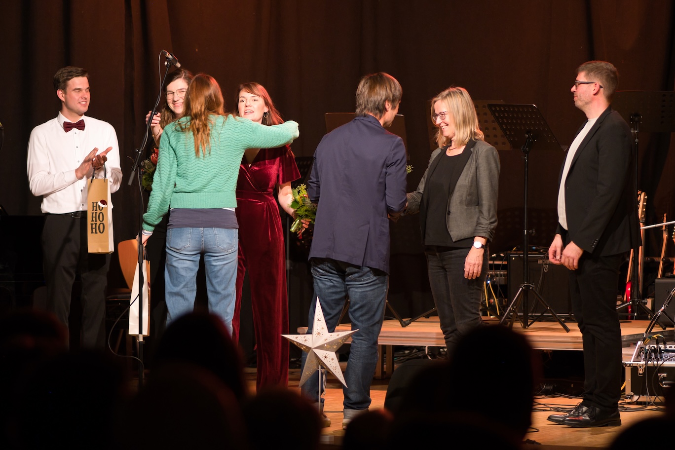 Kurzweilig wechselten sich die Gruppen auf der Bühne ab, wobei die Tuning Tuesdays besonders herausgefordert waren. Die etwa 30 Mitglieder starke Chorgruppe unter der Leitung von Frau Wiesener beendete mit dem flotten Weihnachtsoldie „Santa Claus is Coming to Town“ und dem hinreißend gesungenen Song aus dem Film „Die Kinder des Monsieur Matthieu“ den ersten Teil. Gleich nach der Pause folgte ein weiterer kleiner Chorblock. Hier war absolut bemerkenswert, wie der mitreißende Song „Shine Up!“ entstanden ist, denn Frau Wiesener nahm einen Text von ChatGPT als Vorlage und vertonte diesen passgenau auf ihren Chor zugeschnitten.