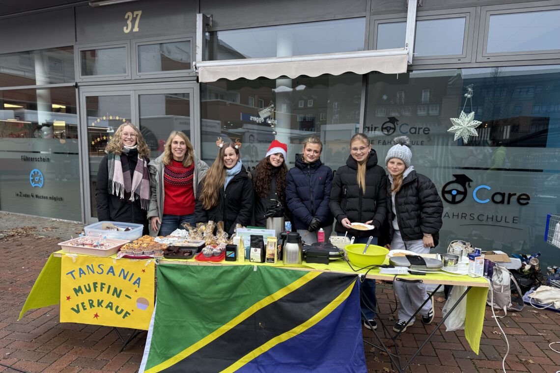 Beim diesjährigen „Muffinverkauf für Tansania“ auf dem Marktplatz konnten mit Gebäck sowie tansanischem Tee und Kaffee 368 Euro an Spenden erzielt werden. Damit können 4 ½ Patenschaften finanziert werden! Eine großartige Summe – ich bin stolz auf euch, Mädels!