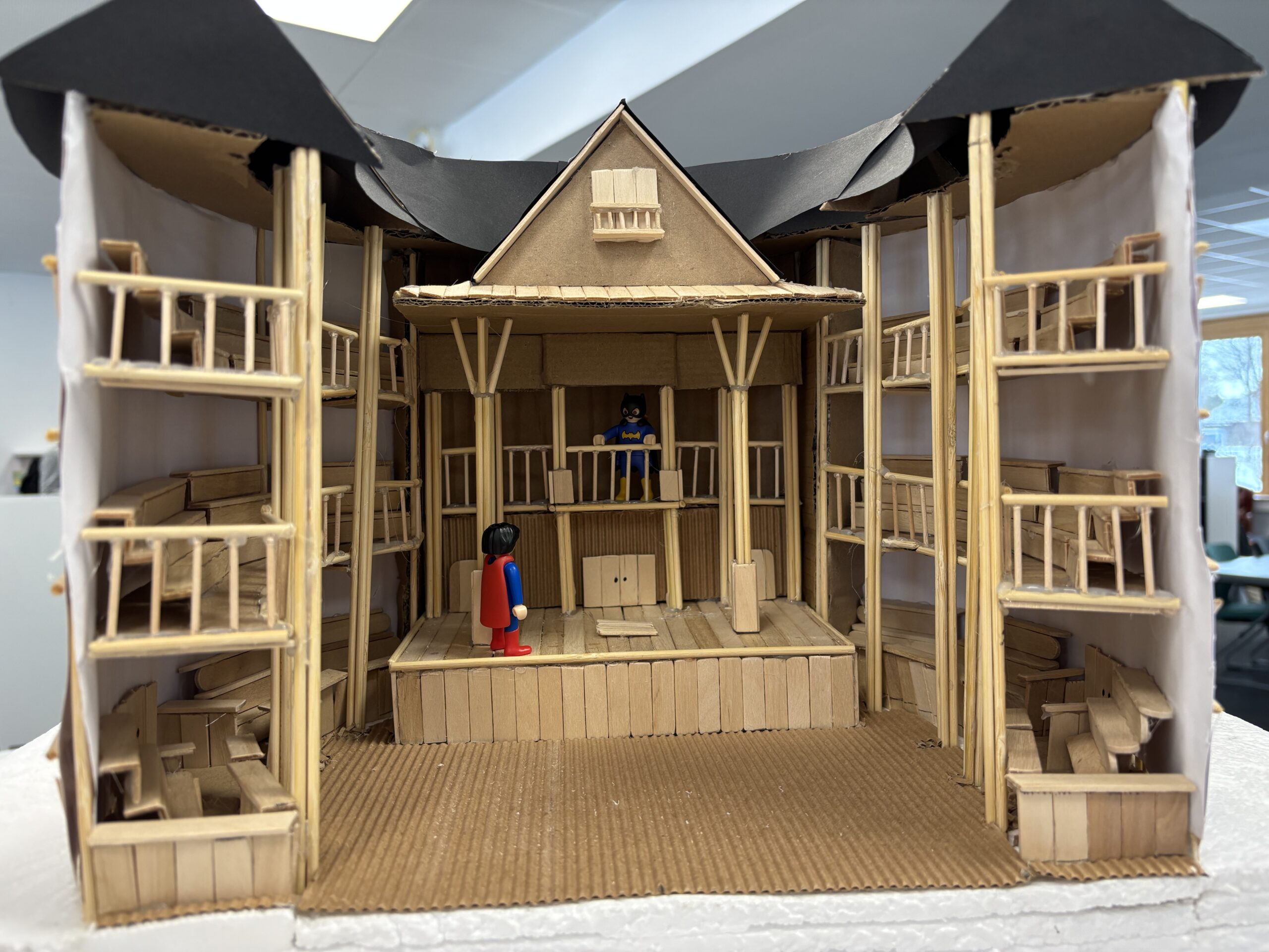 Eine Gruppe hat sich dazu entschieden, ein aufwendiges und detailliertes Modell des “Globe Theatre” aus Holz, Pappe und Papier zu bauen. Ergänzend präsentierten sie Informationen zur Geschichte, zum Aufbau und zur Bedeutung des Theaters für William Shakespeare und seine Zeit.