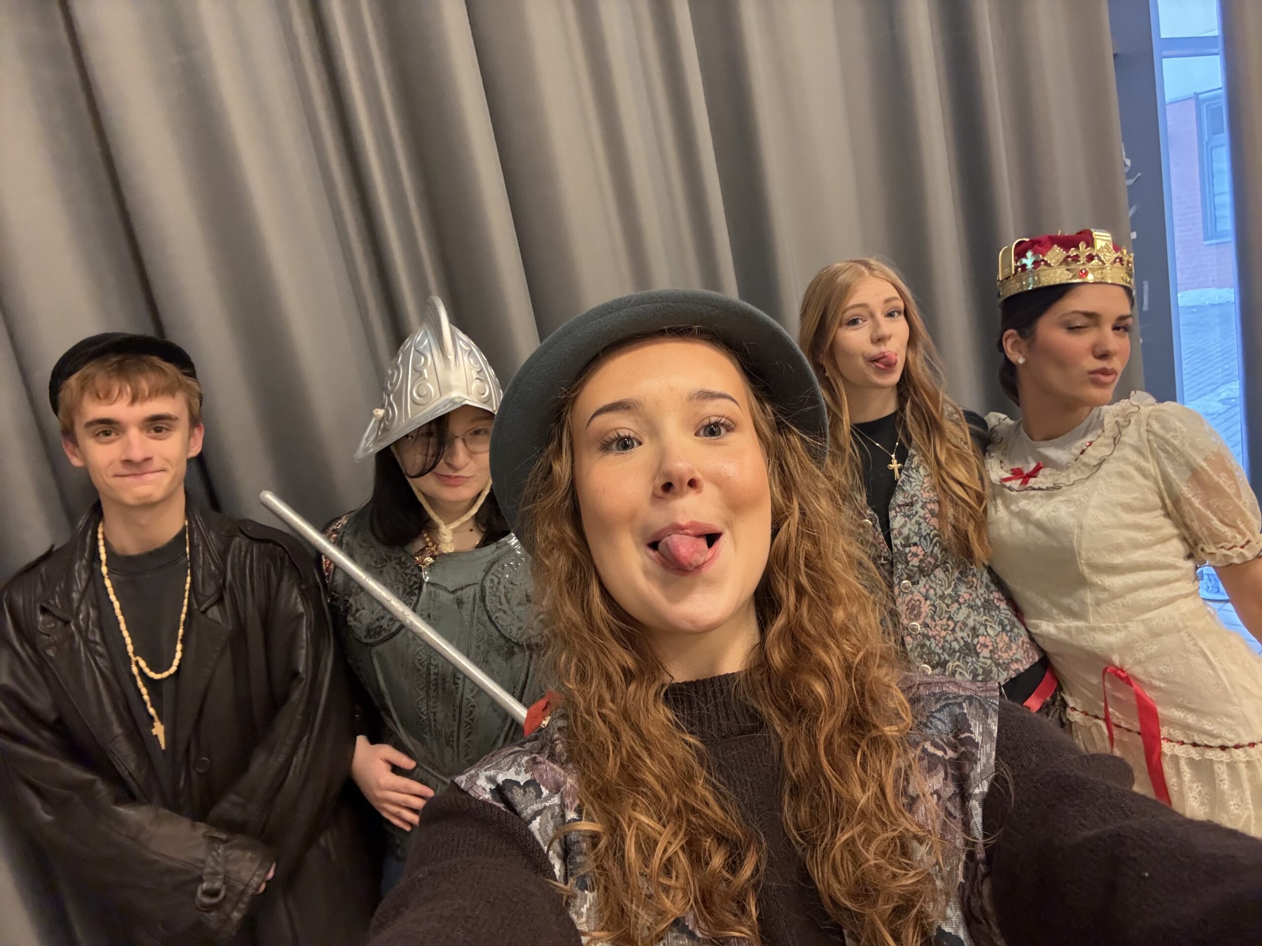 Eine andere Gruppe hat Queen Elizabeth I in Form eines informativen YouTube-Videos präsentiert, indem sich “Studio"-Szenen mit Interviews von einem zeitreisenden Reporter abwechseln. Die Gruppenmitglieder haben sogar den weiten Weg bis nach Poppenbüttel auf sich genommen, um dort bei -5 Grad die Interviews des Reporters vor einer historischen Burg aufzunehmen.