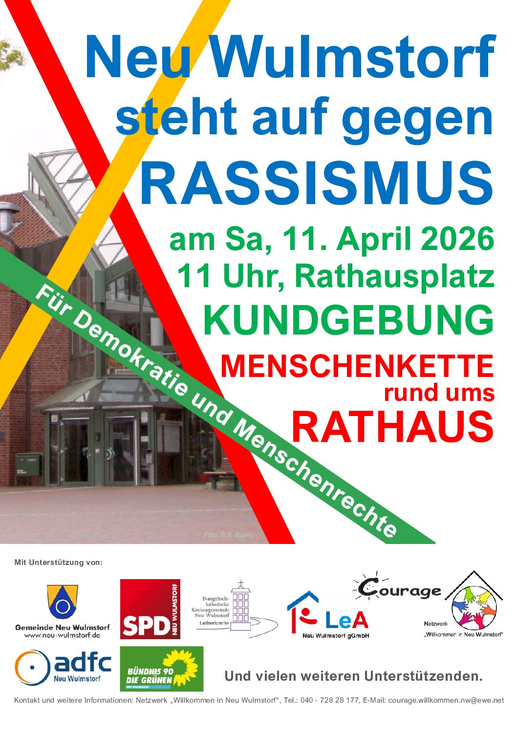 Liebe Schulgemeinschaft, am Samstag, den 11.04.2026, findet in Neu Wulmstorf ein Aktionstag gegen Rassismus sowie für Menschenrechte und Demokratie statt.